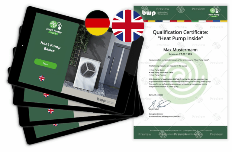 In Kooperation mit dem Bundesverband Wärmepumpe e. V. werden Quereinsteiger durch mehrsprachiges E-Learning qualifiziert.